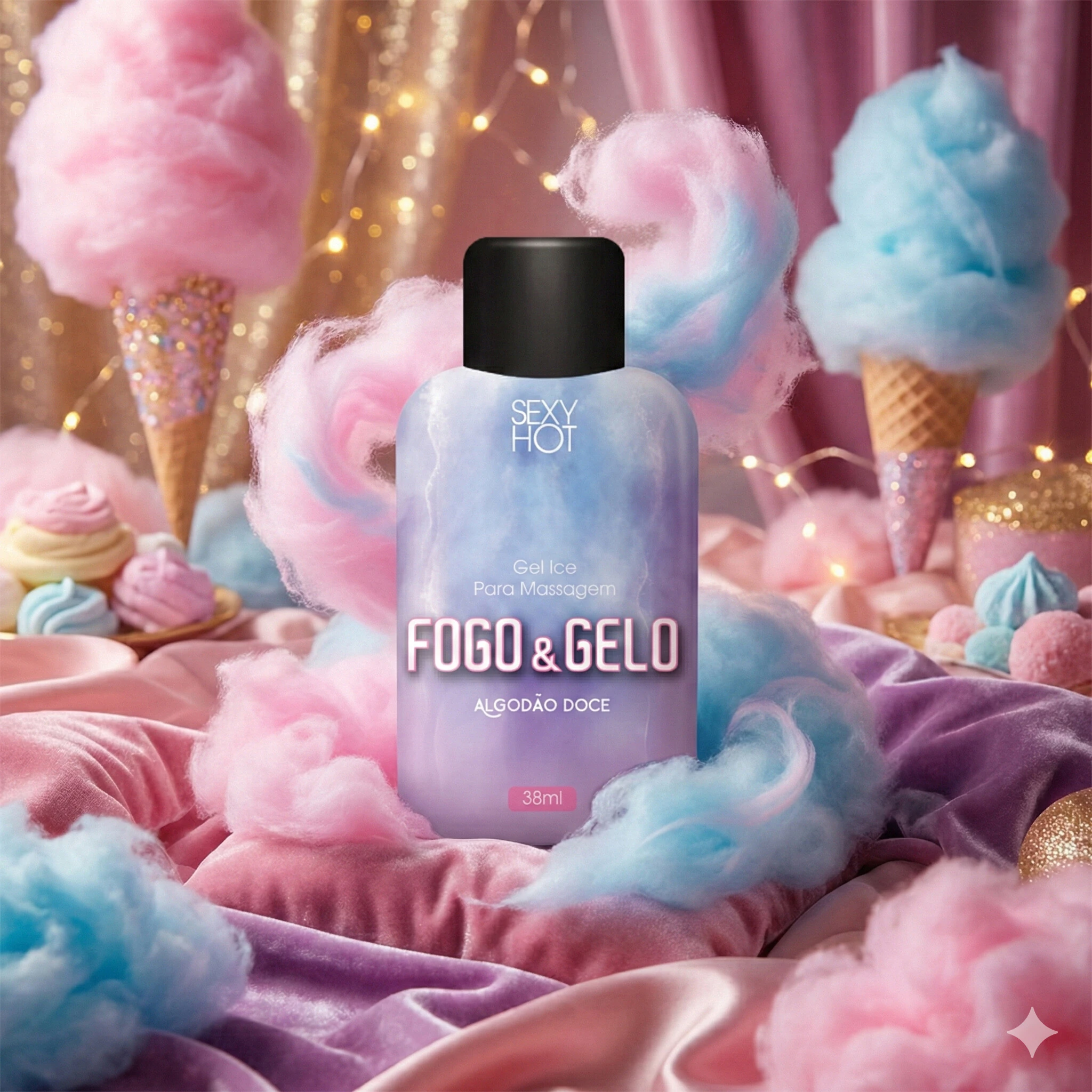 Óleo para Massagem Beijável Fogo & Gelo Algodão Doce 38 ml
