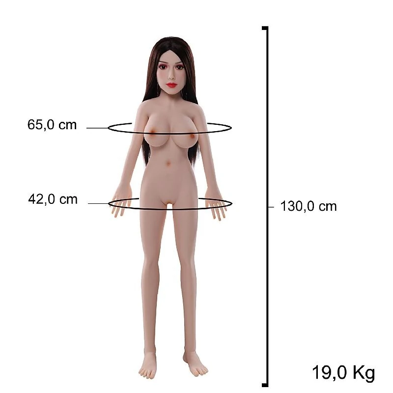 Com 2 orifícios penetráveis, sendo a vagina, o ânus, todos possuem textura interna levando muito mais prazer no momento da penetração. O rosto da boneca possui sobrancelha, cílios realísticos, lábios grandes e cabelo em alto relevo. Todo assemelha-se muito à pele humana, deixando sua experiência próxima à realidade.