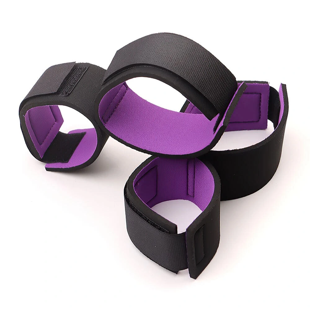 As tiras são confeccionadas em material resistente, como nylon ou couro sintético, com fechos de velcro que permitem ajuste personalizado e fácil uso.